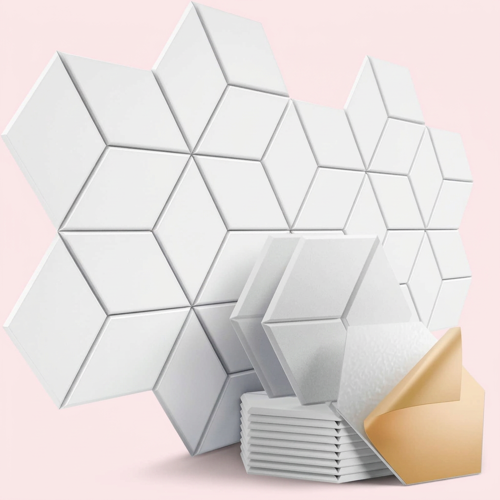 Disse akustikpaneler er skabt til at forvandle lydbilledet i ethvert rum. Ved at fokusere på praktisk lydabsorption, mindsker panelerne uønsket støj og dæmper ekko, hvilket skaber en forbedret rumakustik. Deres moderne design, med rene geometriske linjer, gør dem til en attraktiv tilføjelse til enhver indretning, uanset om det er stuen, kontoret eller et mødelokale.
