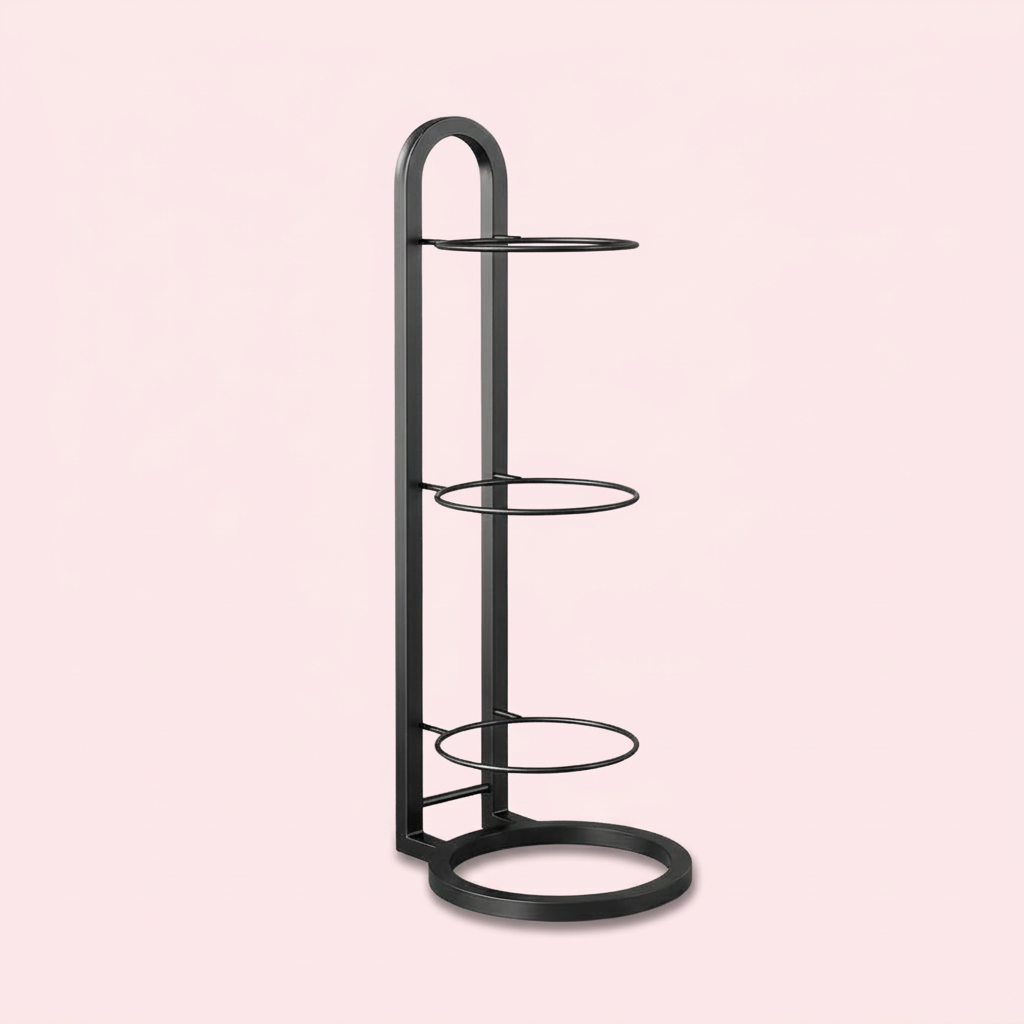Denne sorte metal boldholder er designet til praktisk at opbevare tre bolde lodret. Den tilbyder en pladsbesparende og organiseret løsning for dit sportsudstyr, ideel til hjemmet, garagen eller et dedikeret motionsrum, og sikrer praktisk boldopbevaring.