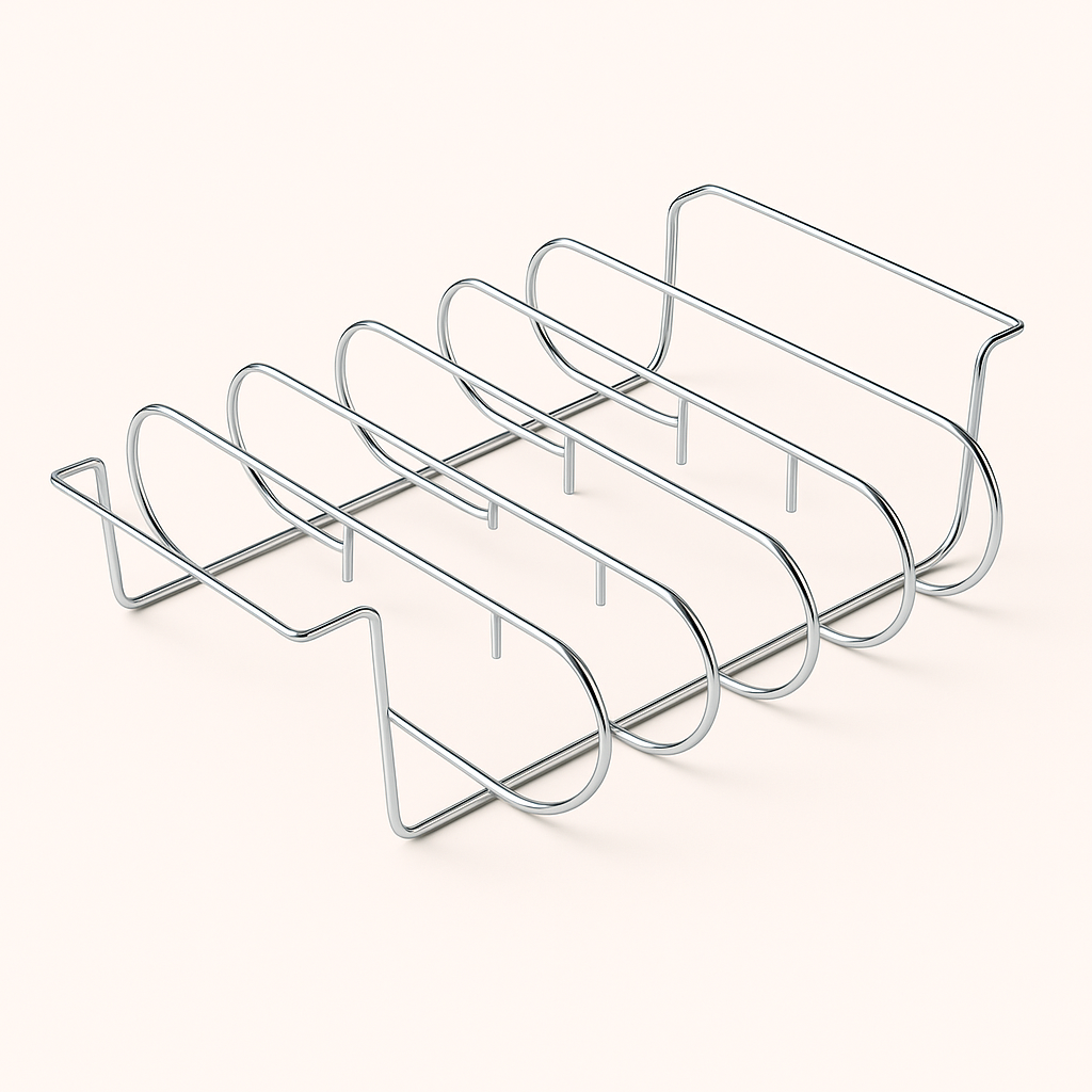Et kompakt grillstativ i rustfrit stål designet til at forbedre madlavningsoplevelsen på grillen. Det sikrer jævn tilberedning af maden og forhindrer den i at falde igennem, ideelt til udendørs brug. Dette praktiske grill tilbehør gør madlavningen lettere.