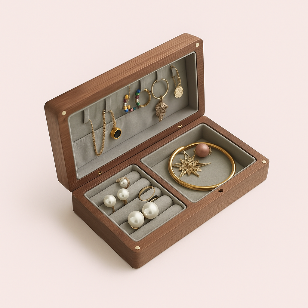 Opdag den velegnede opbevaring af smykker med et funktionelt og stilfuldt smykkeskrin i træ.
