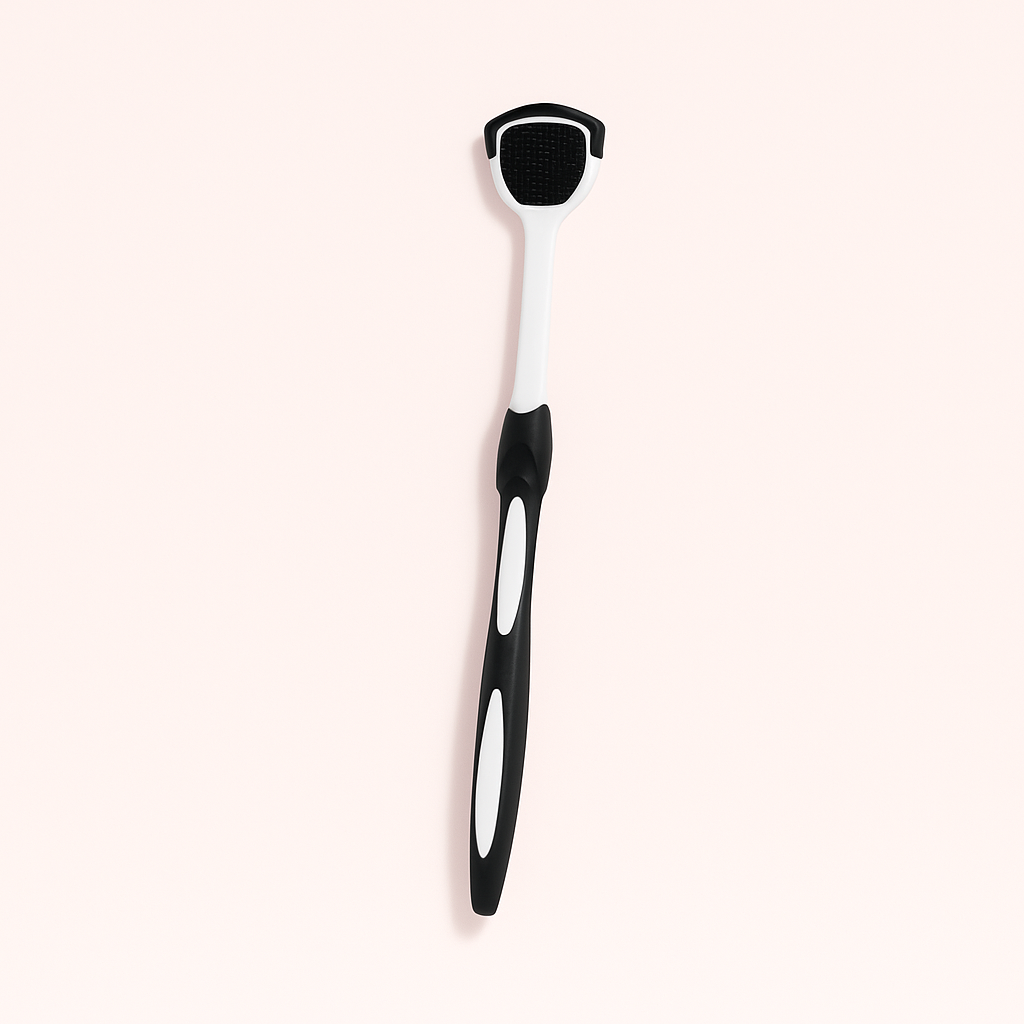 En tungeskraber er et redskab designet til at fjerne bakterier og belægninger fra tungen. Den bidrager til at fjerne madrester og uønskede belægninger, hvilket understøtter en renere mund og fornemmelsen af en friskere ånde. Dette mundhygiejne redskab er en praktisk tilføjelse til din daglige rutine for at fremme god mundhygiejne og kan være et supplement til tandbørstning.
