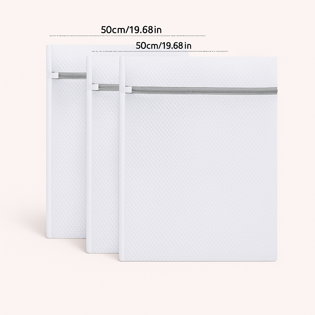 Med et sæt på 3 stk har du altid en passende vaskepose tilgængelig for dine vaskepose til tøj og vaskepose til sko behov. Disse vaskeposer er alsidige og kan anvendes til næsten alt, der kræver en skånsom behandling under vask. Oplevelsen af beskyttelse kan variere fra person til person afhængigt af vaskemaskine og vaskeprogram.