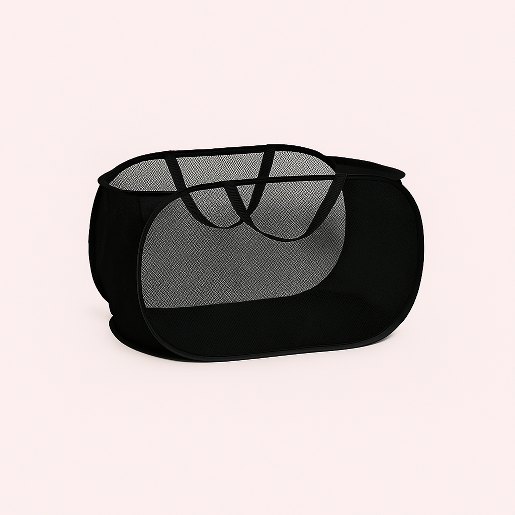 Denne sammenklappelige opbevaringsløsning er lavet af meshstof og er designet til at opbevare og transportere vasketøj med stil og funktionalitet. Med sit moderne mesh-look og udvalg af dybe farver passer denne stilfulde vasketøjsløsning ind i ethvert hjem, der værdsætter både æstetik og praktisk brug. Den lette konstruktion gør den nem at håndtere i hverdagen, mens det pladsbesparende design sikrer, at den ikke optager unødig plads.