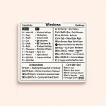 Dette er et genvejsskema til Windows tastaturgenveje, printet på hvidt papir med en mat finish. Det fungerer som en visuel guide, der hjælper brugere med hurtigt at finde og anvende forskellige tastaturgenveje for at øge produktiviteten. Med dette tastaturgenvejsskema kan du optimere din daglige computeroplevelse og spare værdifuld tid.